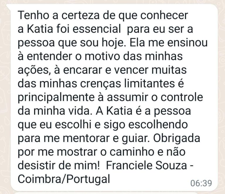 Criadora da Metodologia Escolha se Amar, uma metodologia que ajuda mulheres que sentem que perderam o controle da própria vida a se encontrar e reencontrar consigo mesmas para continuarem escrevendo suas histórias de vida e sucesso.